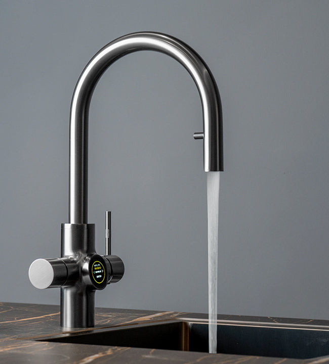 המערכת שלנו מציעה שישה מצבי הפעלה, כולל מים רותחים, מים קרים ב 5°C, וסודה בשלוש דרגות הגזה. היא כוללת מנגנון נעילת מים רותחים לבטיחות ילדים, מערכת טיהור עצמי למניעת התפתחות חיידקים, ומיכל מים רותחים עשוי טיטניום שמבטיח עמידות לאורך זמן ומים באיכות מושלמת .