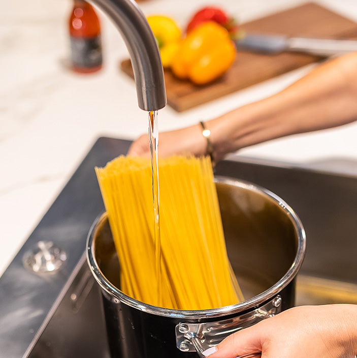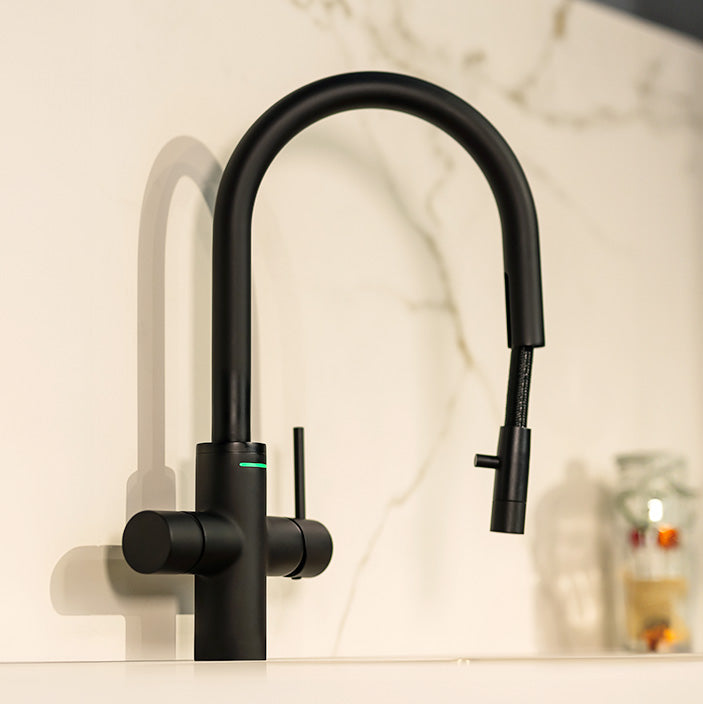 המערכת מספקת מים רותחים, קרים ומוגזים ישירות מברז אחד, ומייתרת את הצורך במכשירים נוספים כמו קומקומים, מתקני מים או סודה, ומשאירה את משטח העבודה פנוי ומסודר.