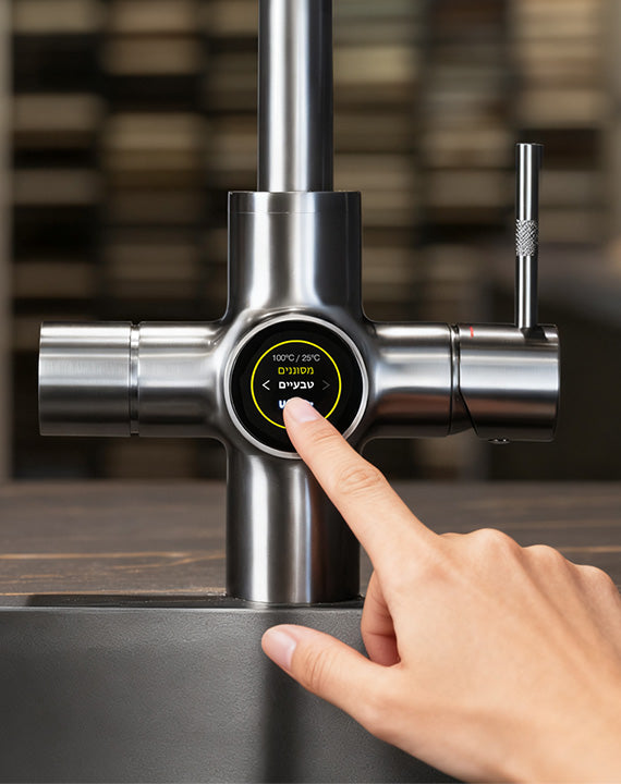 דמיינו את היום שלכם… הוא מתחיל עם בחירה מושלמת של מים בטעם תות טבעי, אפרסק מתקתק או פירות טרופיים, והכל ישירות מהברז במטבח שלכם.